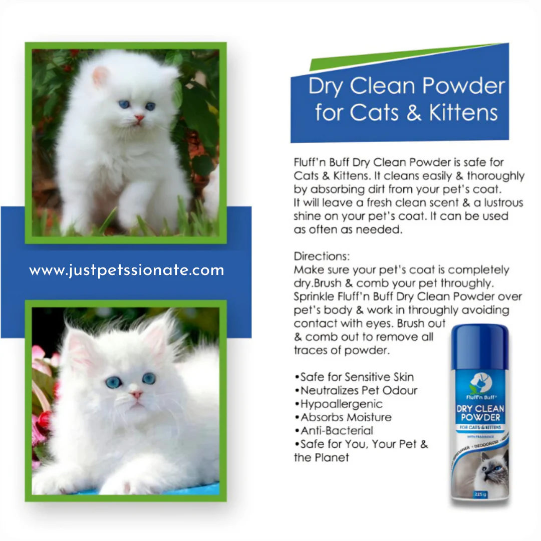 Fluff’n Buff Dry Clean Powder for Cats & Kittens – 225g
