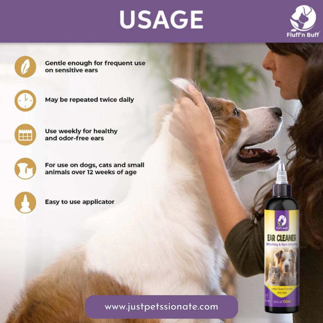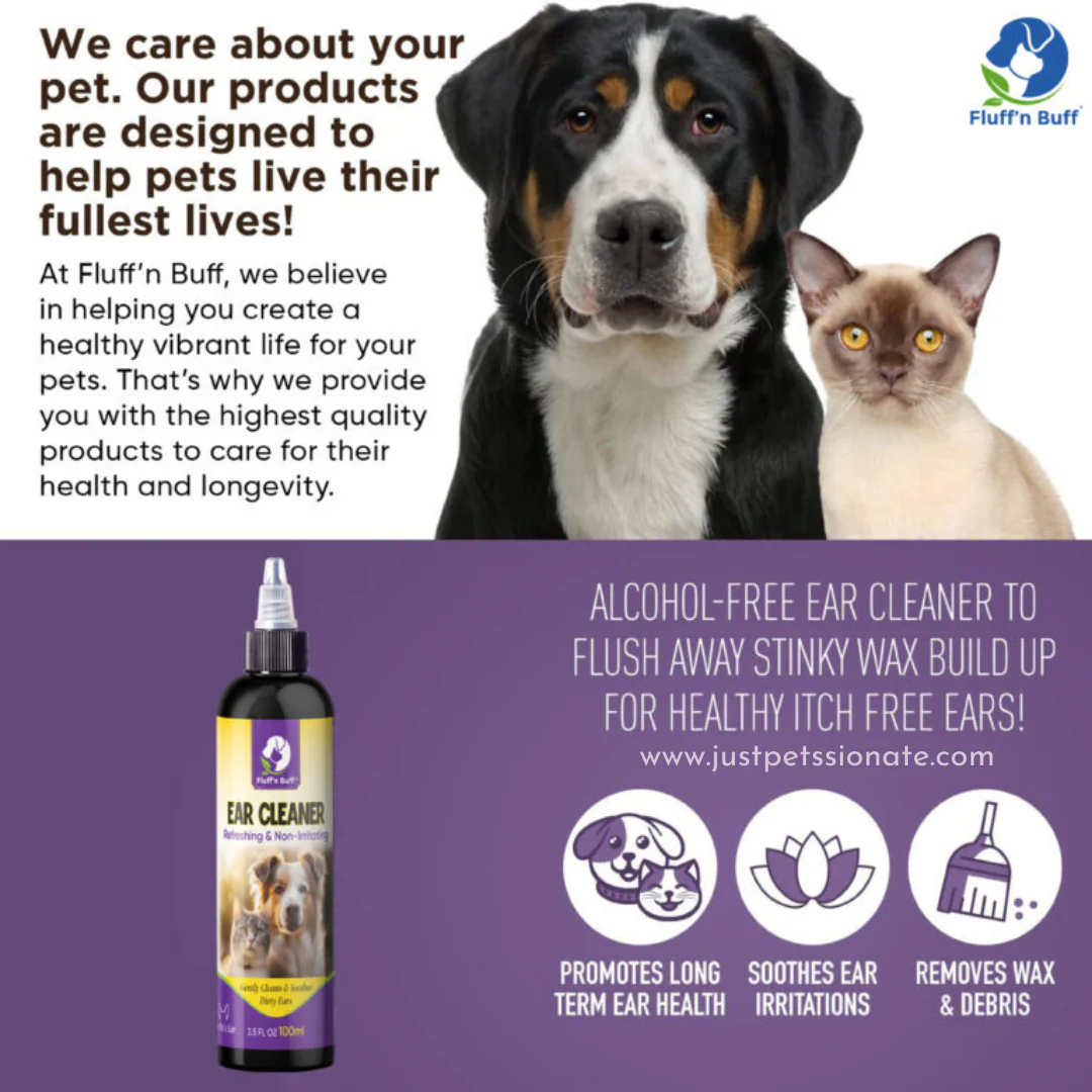 Fluff’n Buff Pet Ear Cleaner: The Ultimate Ear Care Solution for Your Furry Friend.