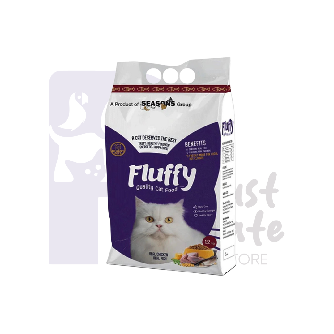 Fluffy Cat Food – 1.2 KG: Compact 1.2 KG Real Chicken & Fish pack, ideal for freshness and easy storage. Specially formulated to meet your cat’s nutritional needs, promoting a healthy coat, strong muscles, and boundless energy. A delicious daily meal your cat will adore.