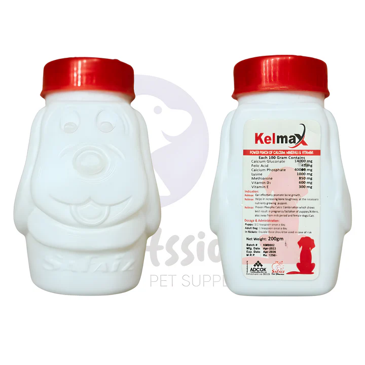 Kelmax is a nutritional supplement formulated for both cats and dogs, designed to provide essential vitamins, minerals, and amino acids to support overall health.
